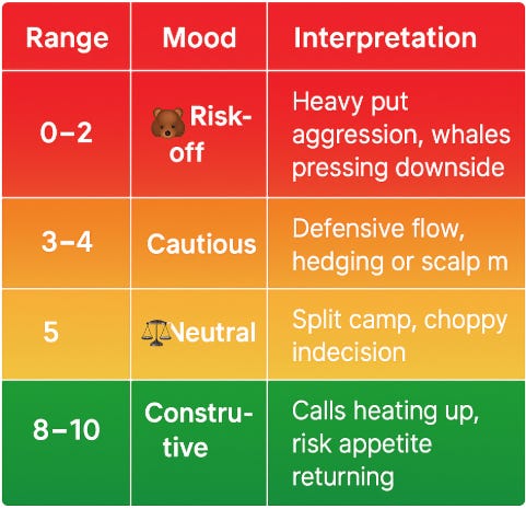 It’s not just another sentiment gauge. It’s a live pulse of how hard, how soon, and how confident big money is betting — all boiled down into one number from 0 → 10.