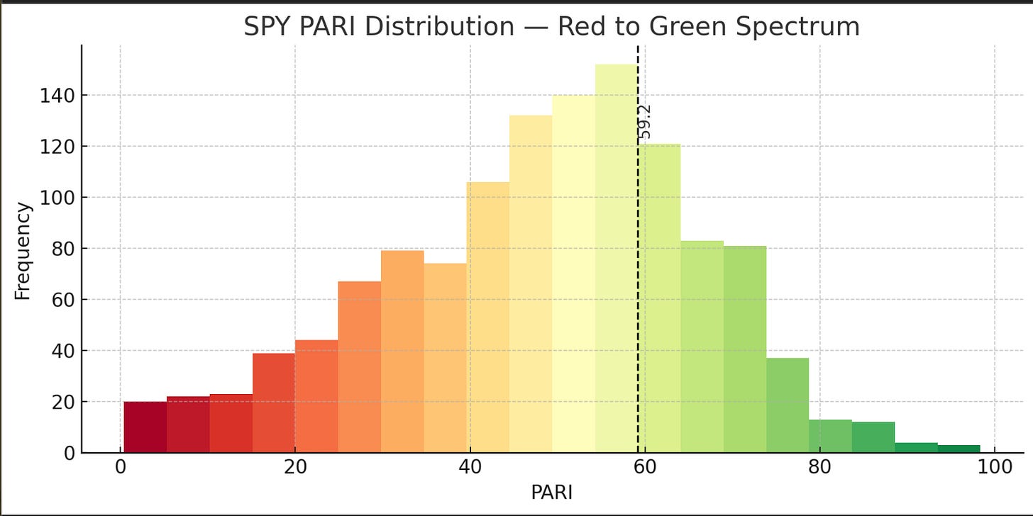 (PARI = Price Action Risk Indicator, our gauge of how healthy SPY’s trend really is.)