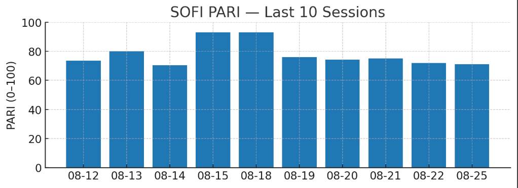 🗣️ Call: Bull-leaning. Dips are buys while PARI ≥ 60; strength aligns with yesterday’s call flow pop.
