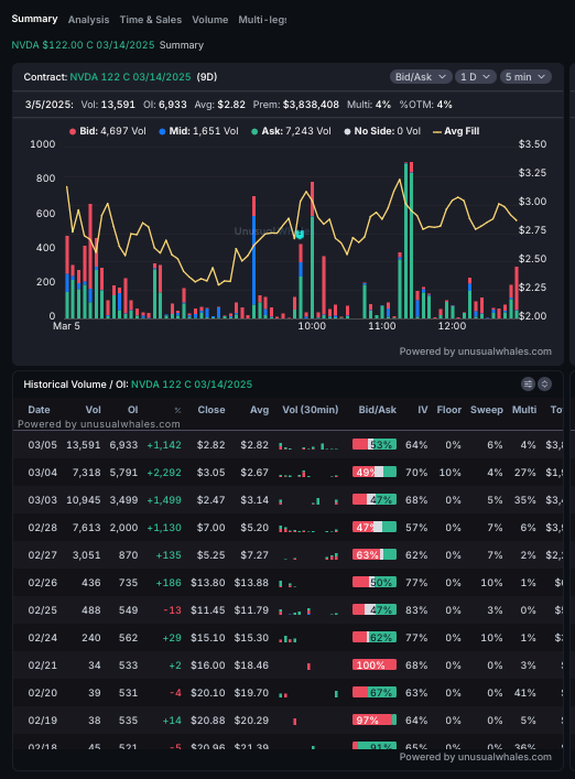 🐳 NVDA Flow: 122c Picking up heavy action on the INTRADAY SNIPER