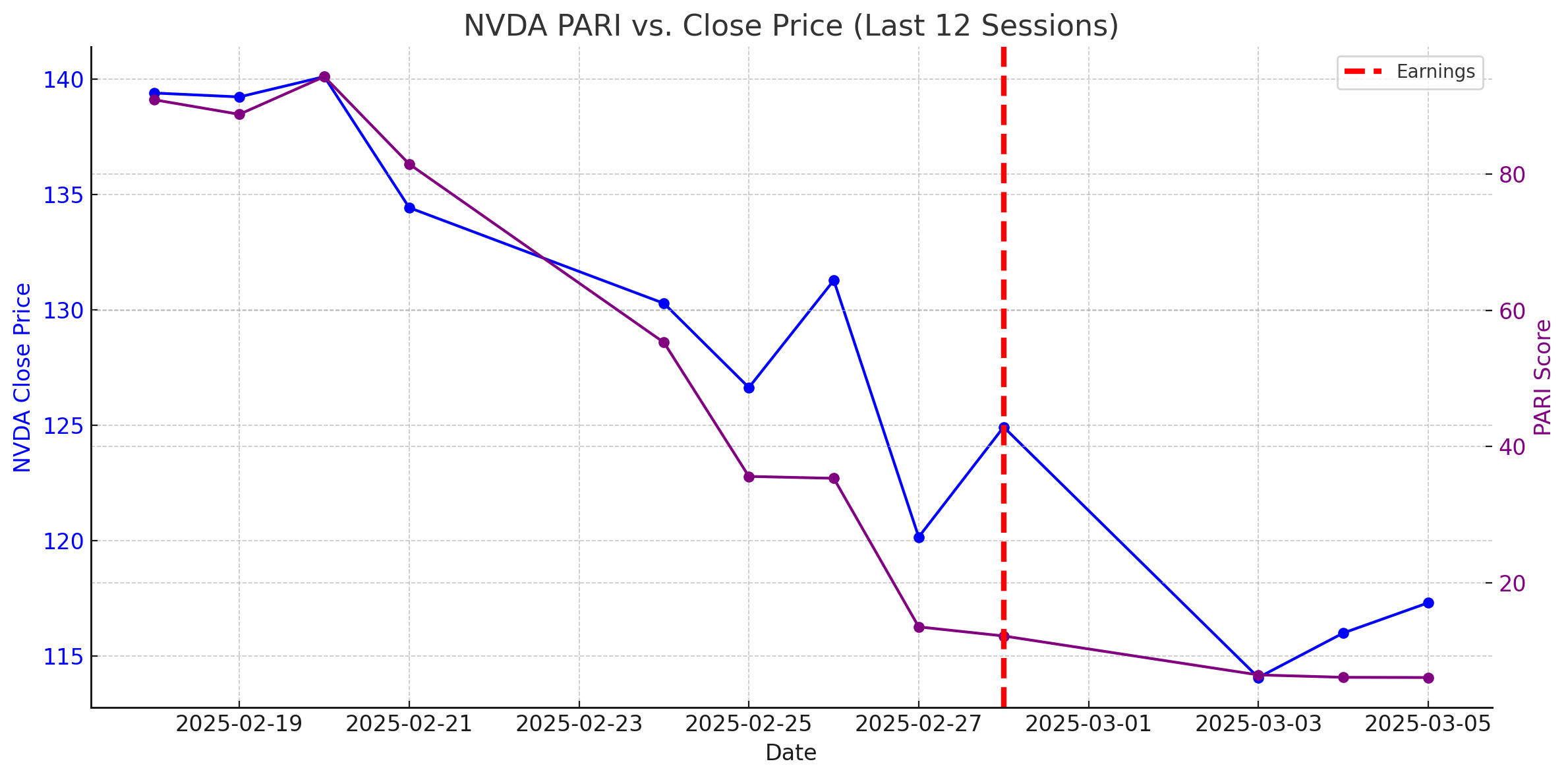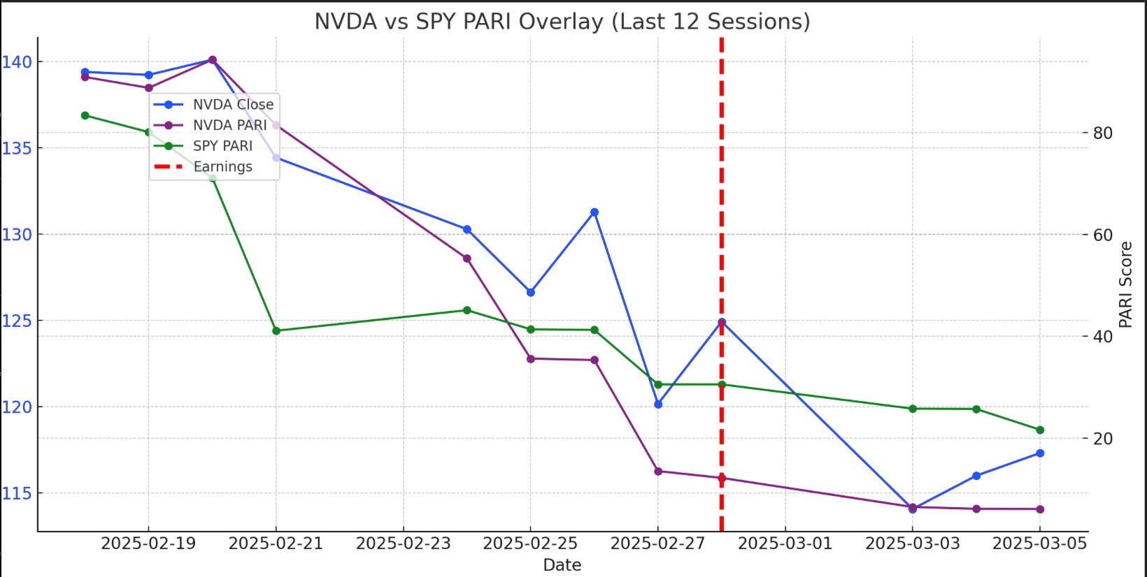 📉 NVDA PARI Overlay (Last 12 Sessions)