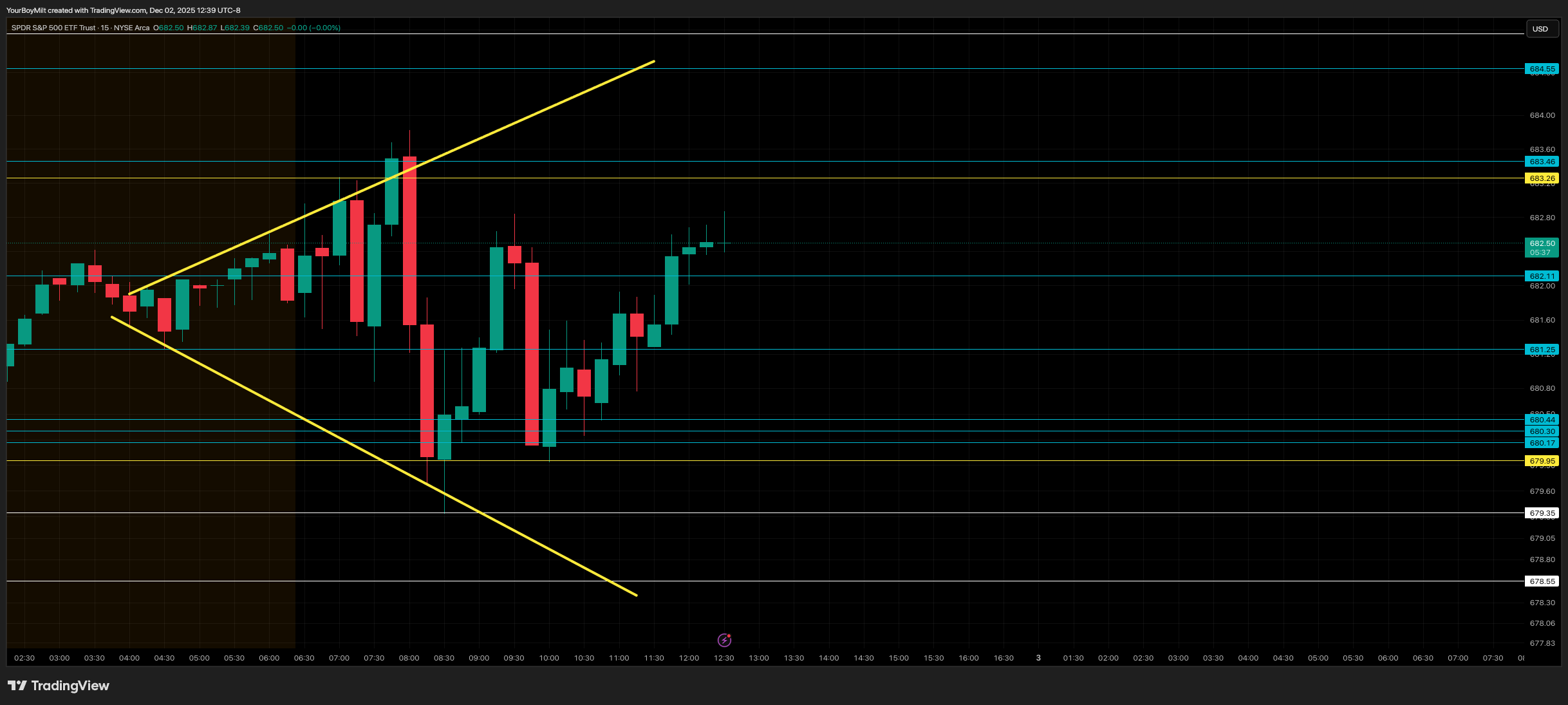 If buyers clear 682.20 cleanly: You get a controlled push back toward the $683.26 to $683.46 zone. That is still heavy resistance but reclaiming it flips the tone to balanced instead of pressured.