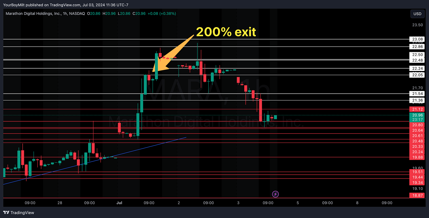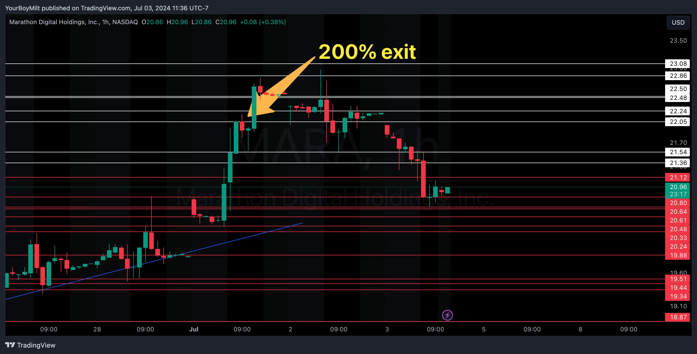 đŞ MARA was a good example. In my previous life when it was popping, I would have held to some random point and hoped for a round number percentage (you may be still be doing that). But because of the teachings, we were able to see the exit levels clearly.