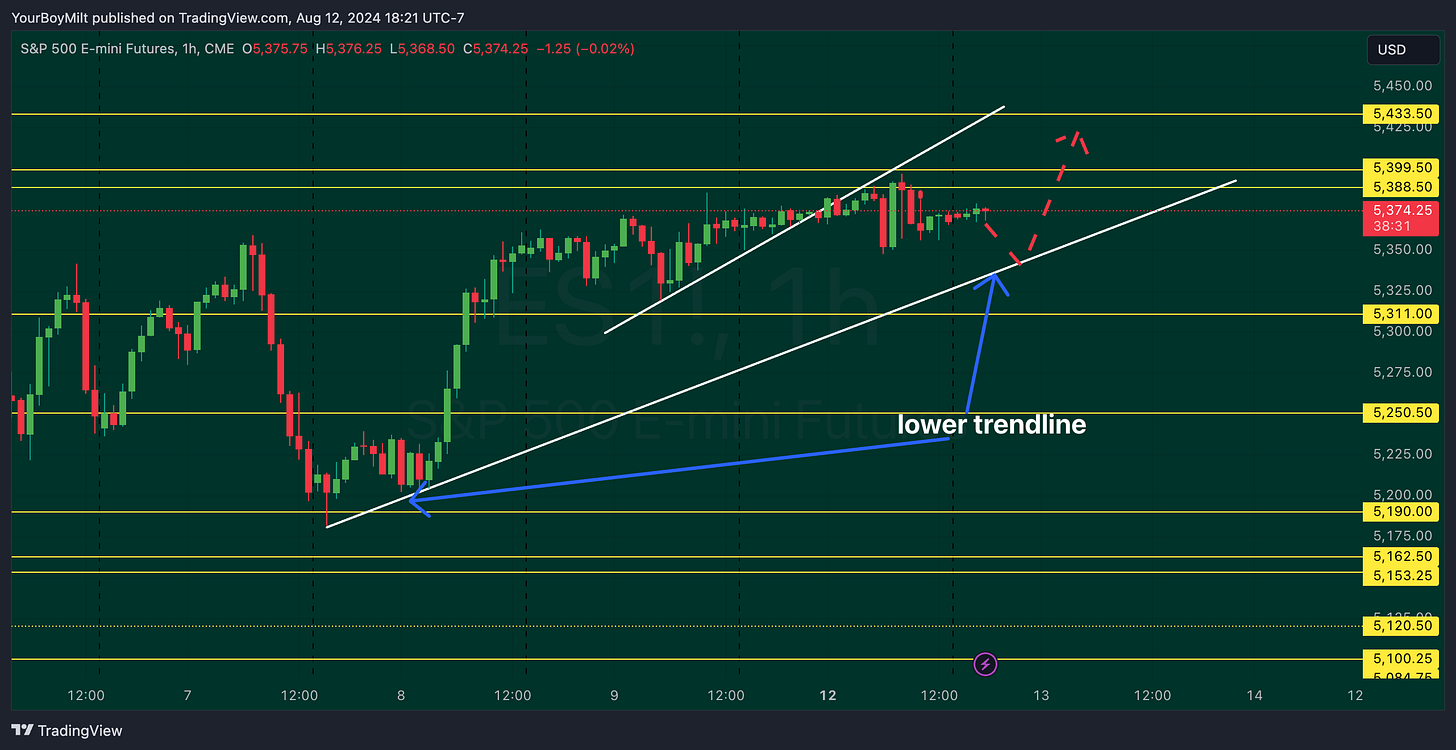 b. The trend line forming below comes into play and provides a support, sending SPY to retest the monthly with a potential scam candle reaching the SPY hourly gap level it missed out on today