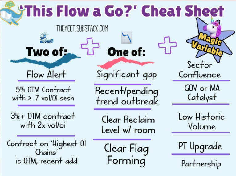Try to find a Whale TA validation OR Insurance if there is no catalyst Most flow isn't news--it's explosive Price Action; your first exercise on the chart of the ticker of interest should be to pretend the whale is a chart nerd and validate their nerd ass thinking.
