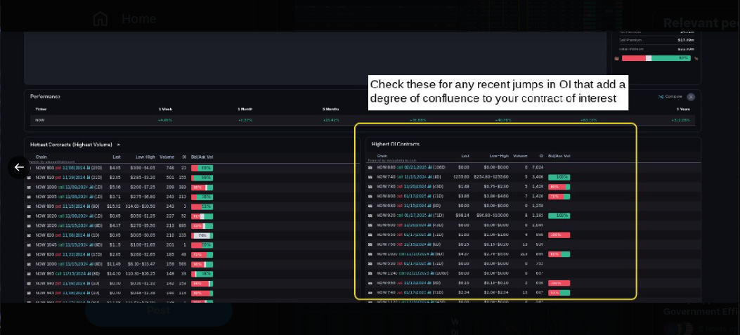 Watch the High OI Chains: people ignore this gem. If you see flow you like, you should immediately check the High OI Chains to see if another contract recently got OTM attention. It means whales are building.