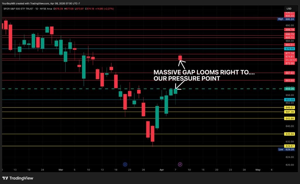The daily skip-up has created a massive void. Look at the distance between current price and yesterdayâs Price Action. That gap ends exactly at our $656 Pressure Point. History shows that gaps like this are created by news, but filled by technical reality. We are looking for price to return to this level to re-verify the move.