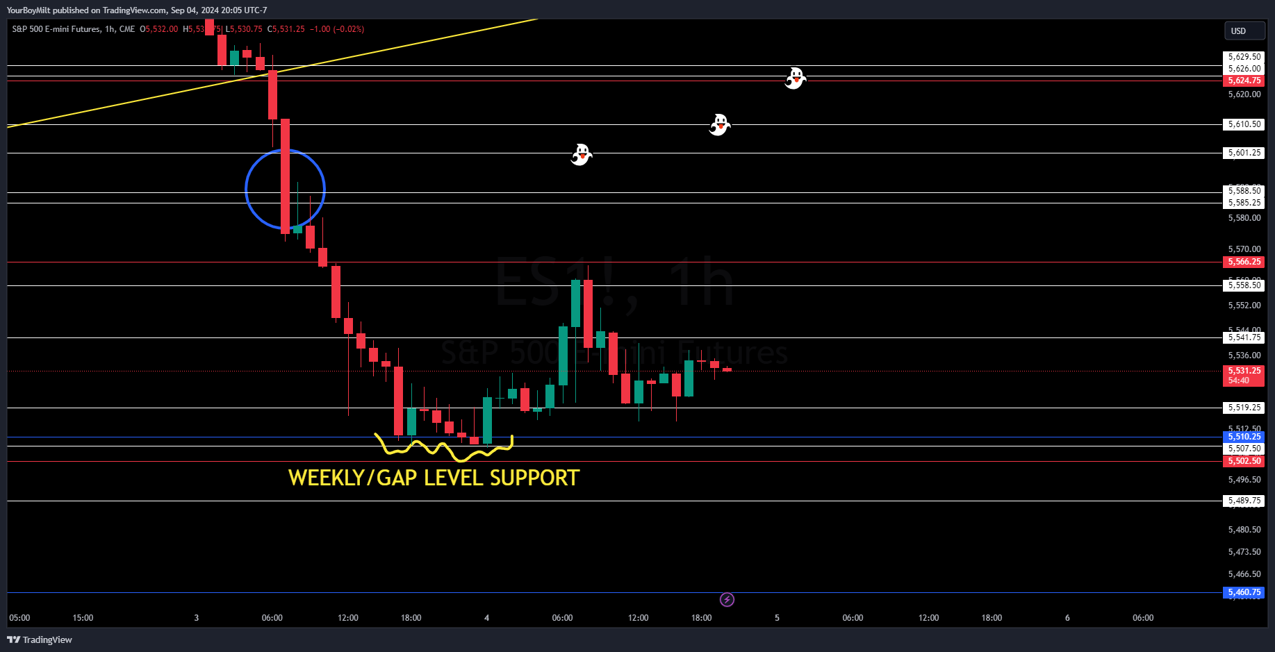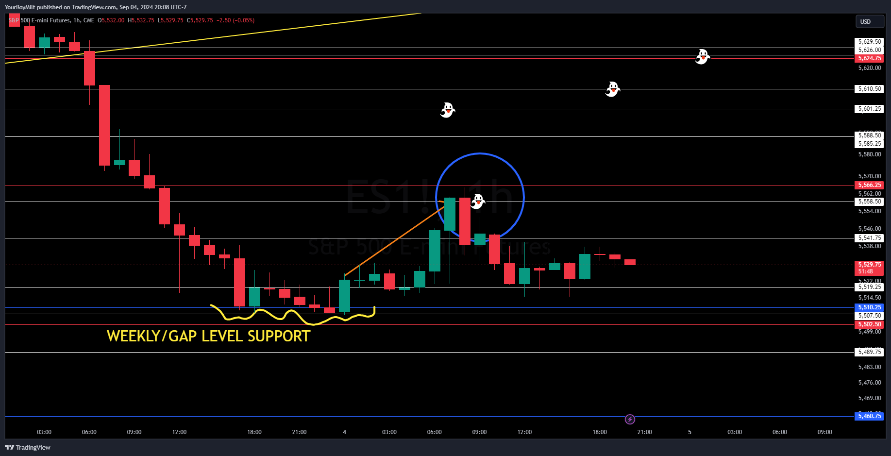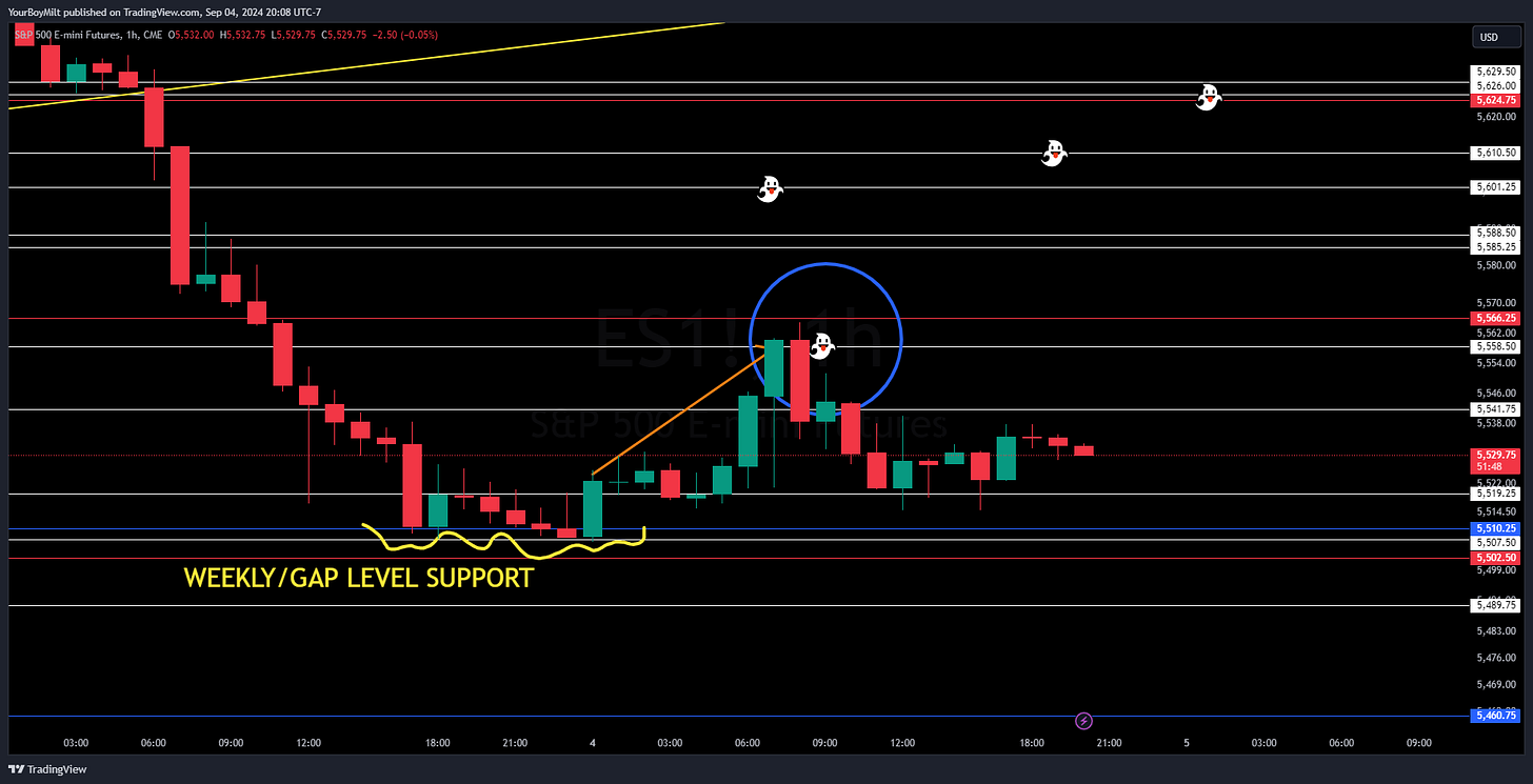 Spooky ghost—the missed weekly backtest-is the most logical answer—but we don’t have to guess, we just wait to see if that level is defeated or if that level rejects.