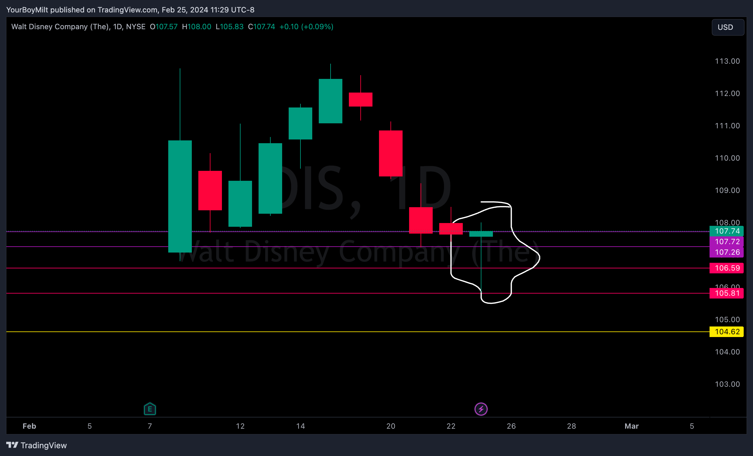 DIS Chart is interesting here because you can view it as ultimately bullish, but with a lot to gain to the downside should we have a pullback.