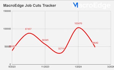 Current job cuts stand at nearly 50,000 for the month, which is a decrease on a year-over-year basis when comparing MacroEdge data to Challengerās, but weāre still holding onto our 62,500 estimate for the month. For March, we anticipate that we see in increase in job cuts (@J77324 - our WARN tracker) has done a great job explaining why this is in many of his threads on X. Weāre also pleased to have another job cut data expert onboard with Ray, who is a software engineer by day. This will expand the scope of our data sources.
