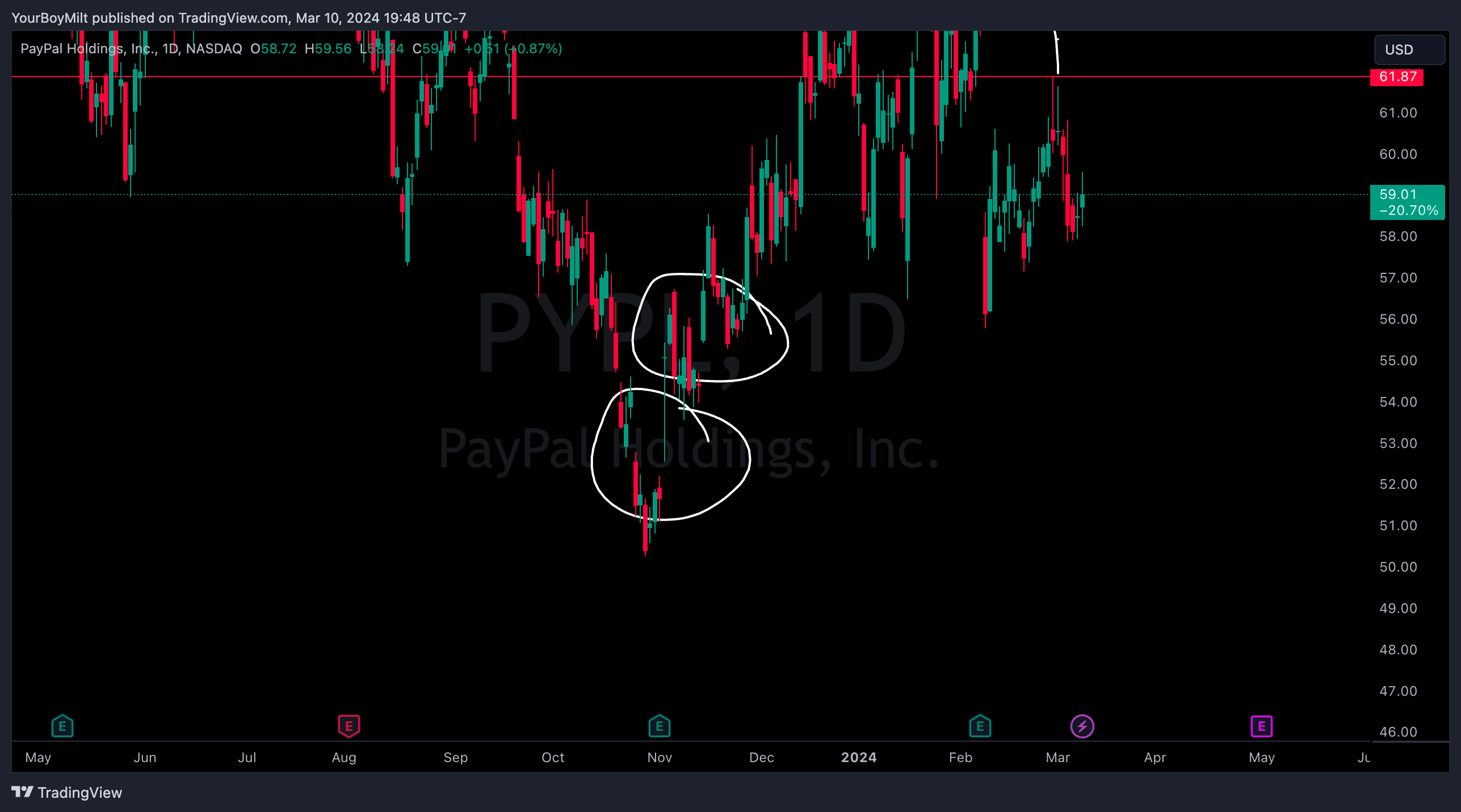 đYEET Call: PYPL 4/19 65c // Prime Entry: 54.49 (fine), 52.22 (optimal)