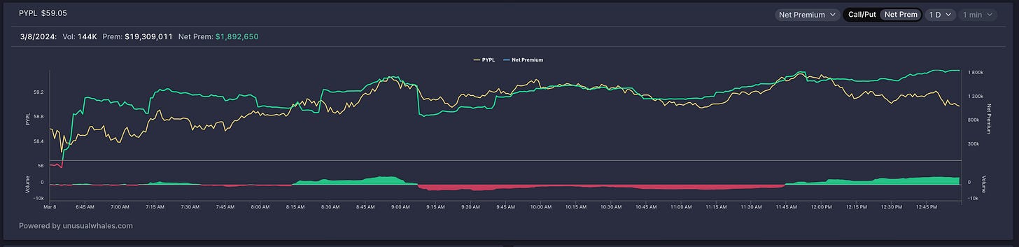 He also did what Milt is always harping on and checked the net premium for PYPL and made a small note that the call buying sentiment greatly inverted SPY.