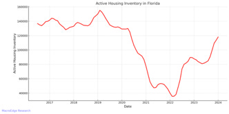 Active housing inventory in Florida is nearing pre-lockdown levels (finally) - yes, the state added people since 2019 but itâs also the oldest state and thereâs more supply on the way. The Southwestern portion of the state has seen inventory explode and we are also seeing inventory finally increase on the East Coast as well⌠Below: Miami-West Palm-Fort Lauderdale: