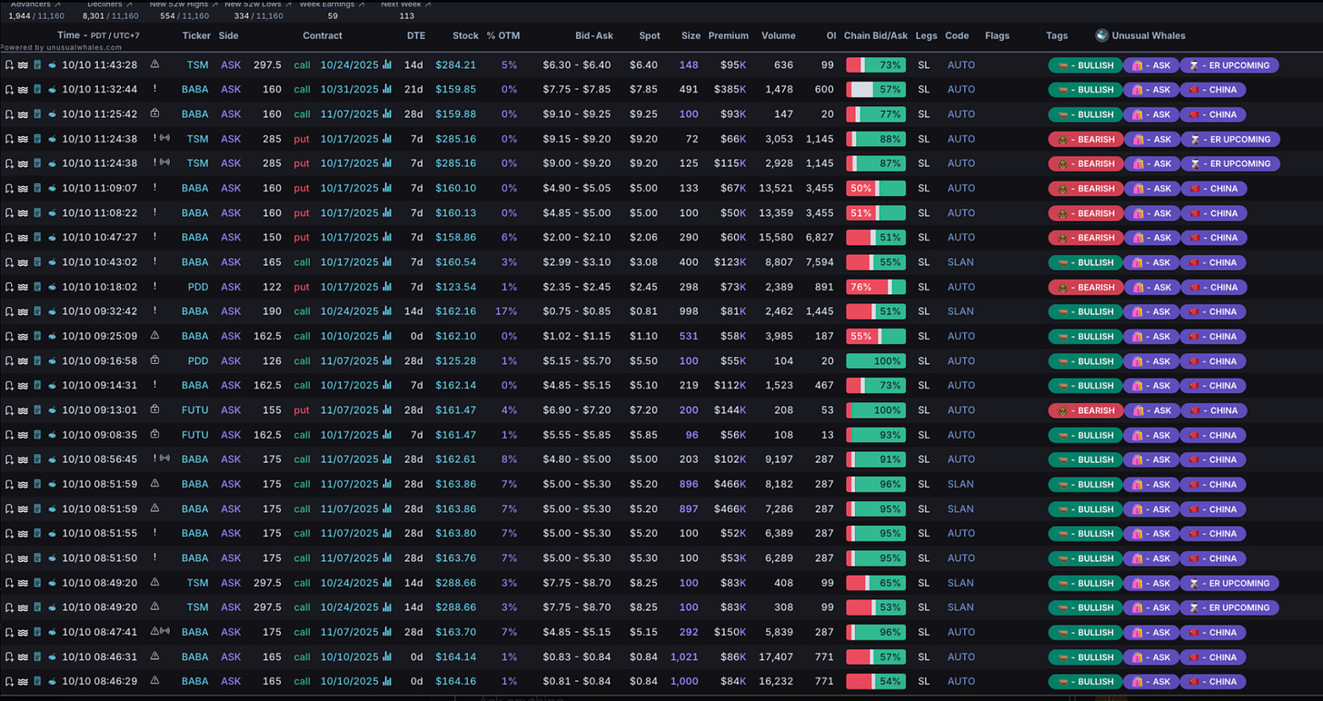 Outside a few BABA put stragglers, the big money is still flowing into calls across BABA, PDD, JD, and TSM.