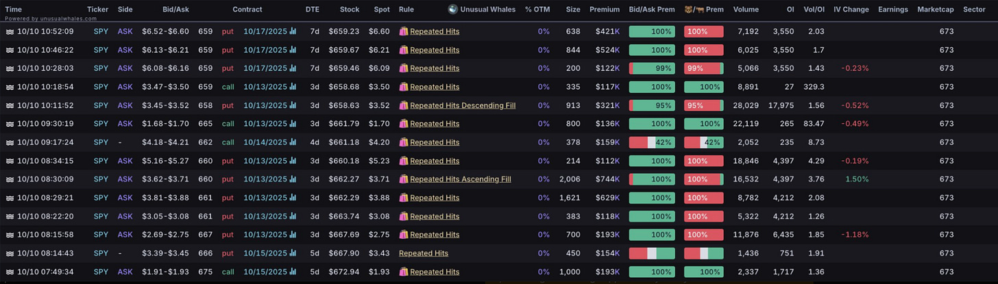 We’ve seen strong repeated hits and consistent bullish ASK-side sweeps into the 10/17 and 11/07 expirations.