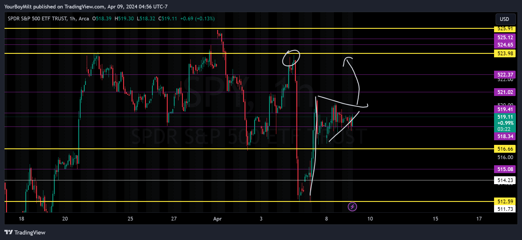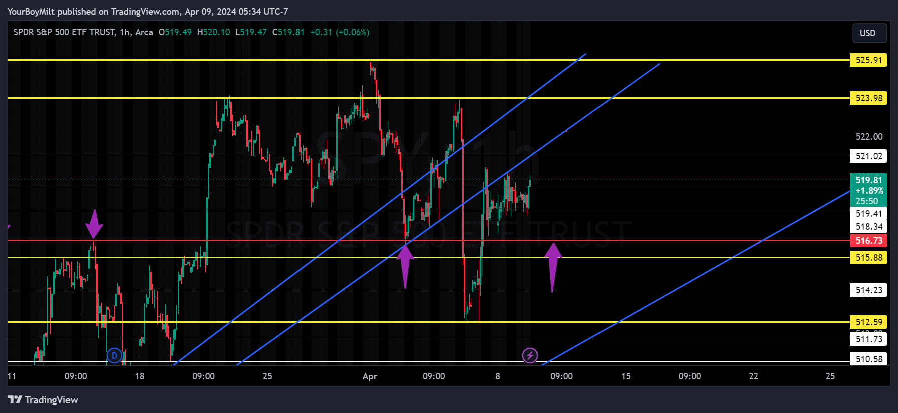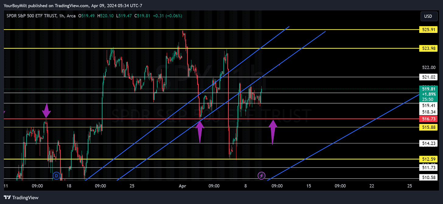 SPY 520p at a rejection of the upper trend, 524, 524.7, or 525.98 (previous high).