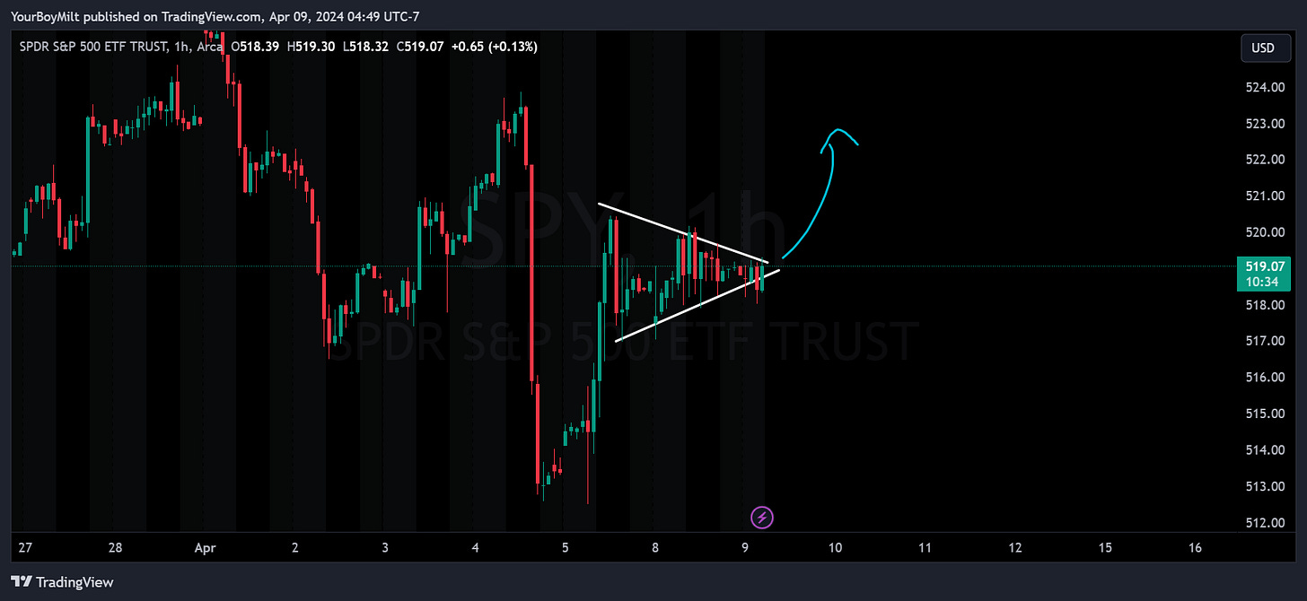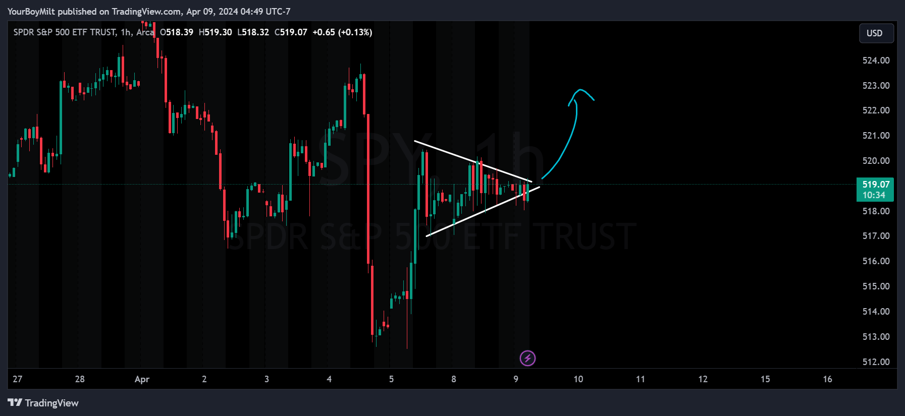 SPY Naked: Looks like your run of the mill bullish pennant, which would push up to retests of the higher levels