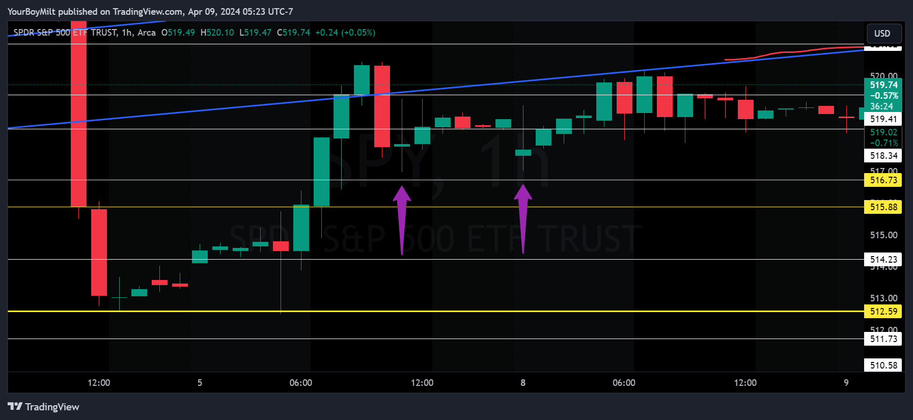 SPY 517p at a rejection of SPY 521 / The First Trend Above