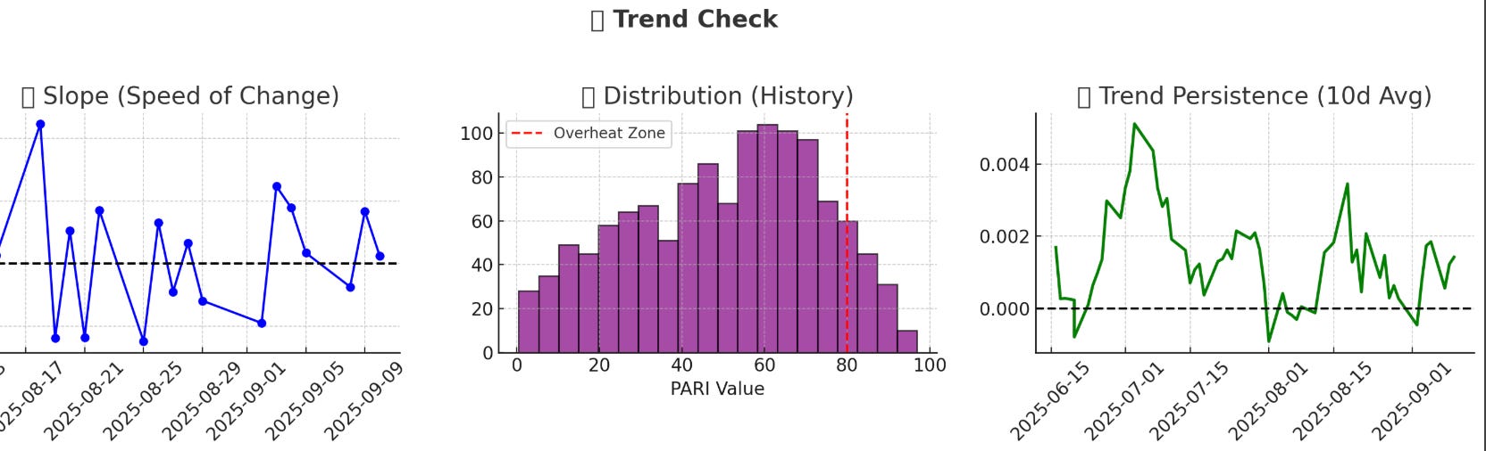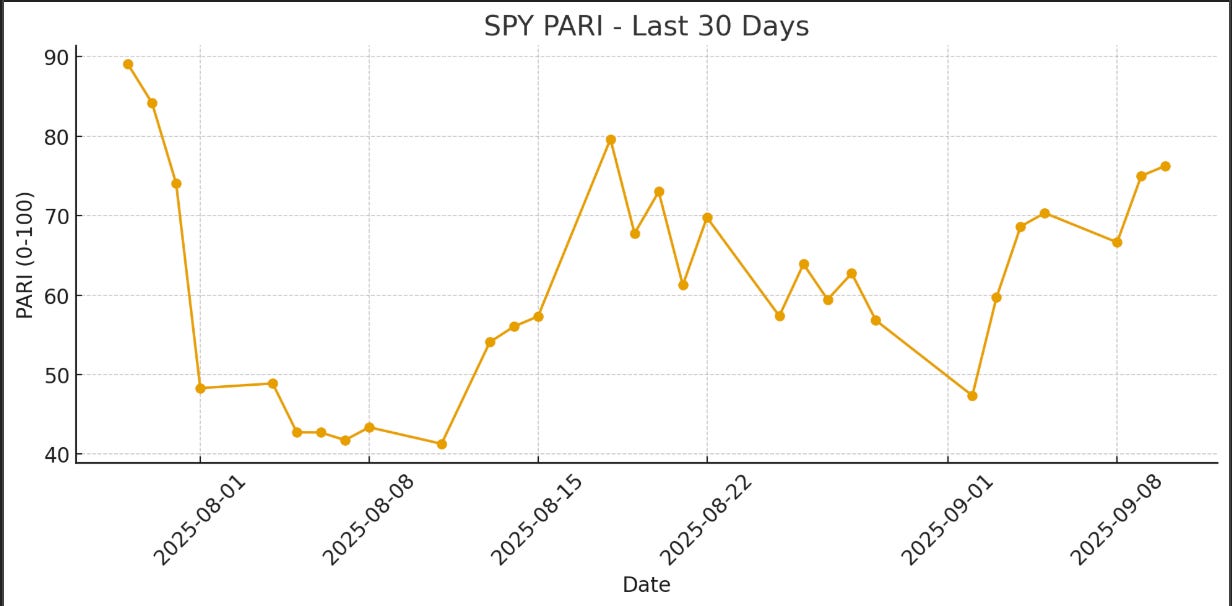 📊 Distribution (History): Most big runs don’t die until PARI is deeper in the 80s. Sitting in the 70s is strong but not overcooked.