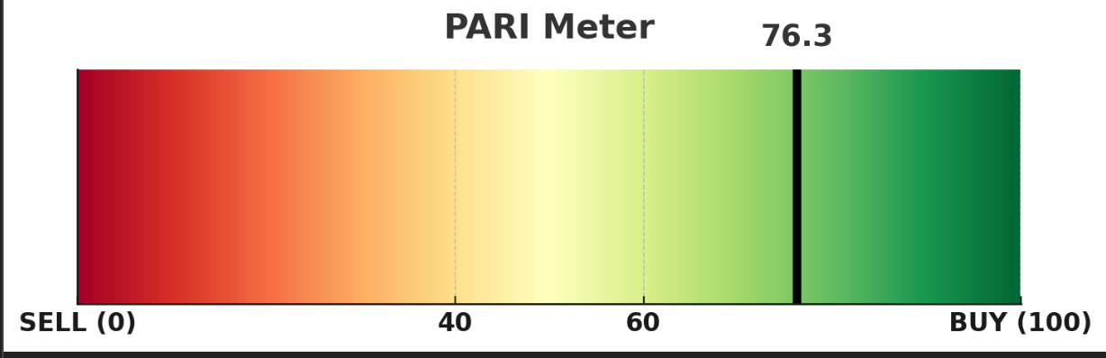 🟢 Above 70 PARI = stay long, momentum still healthy.