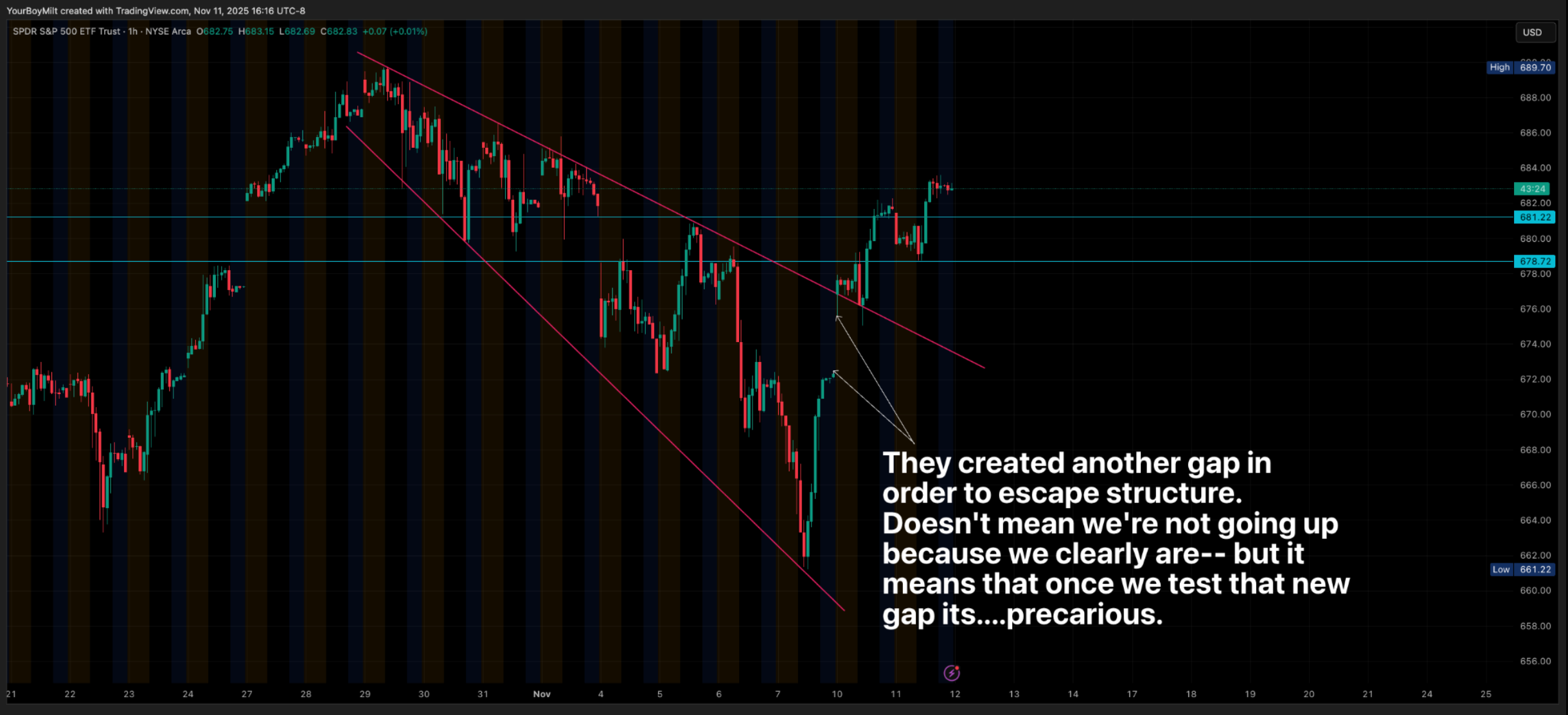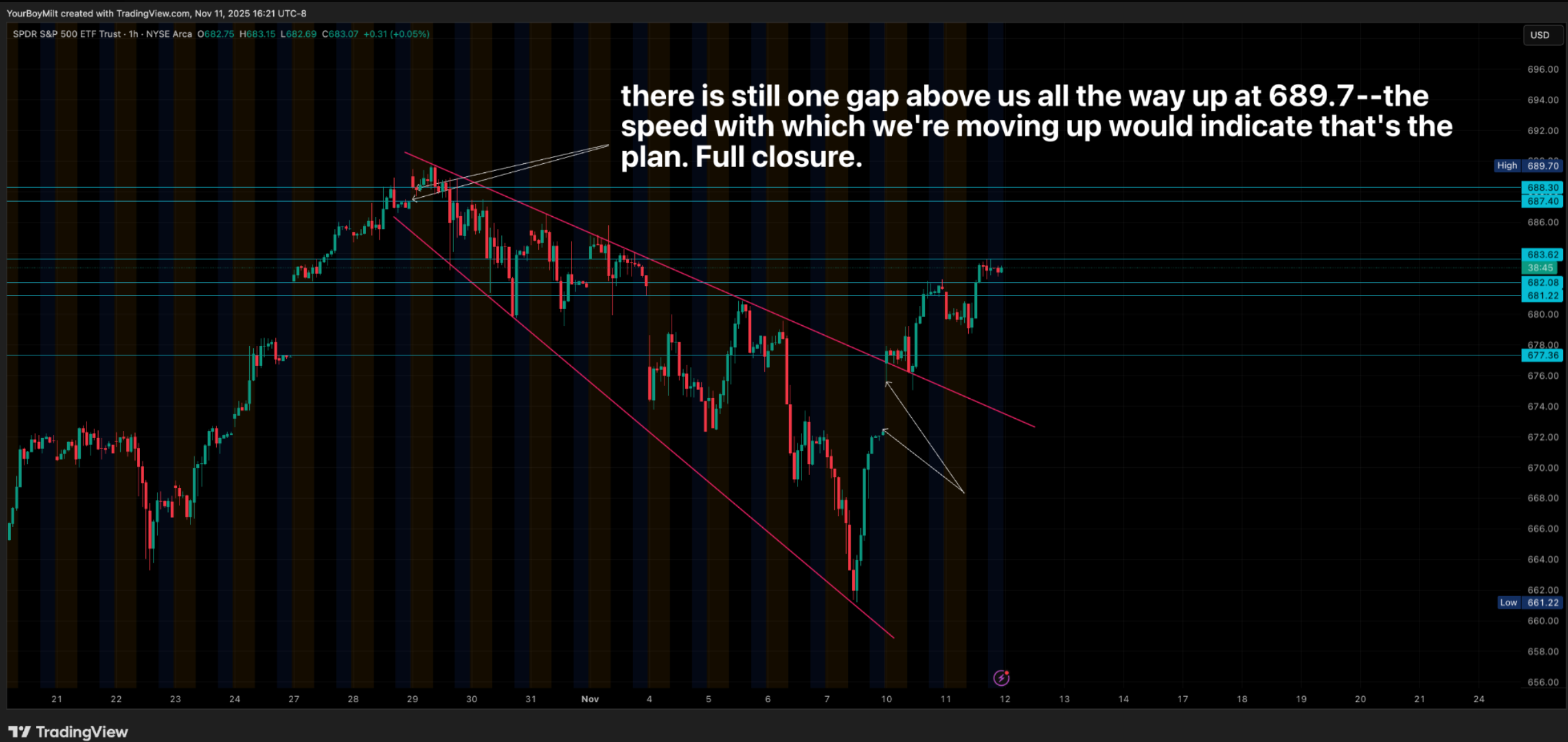 There’s still one potentially untested former gap above at 689.7. The pace of this move suggests they want full closure — a straight run to seal the macro loop. It’s there or the high.