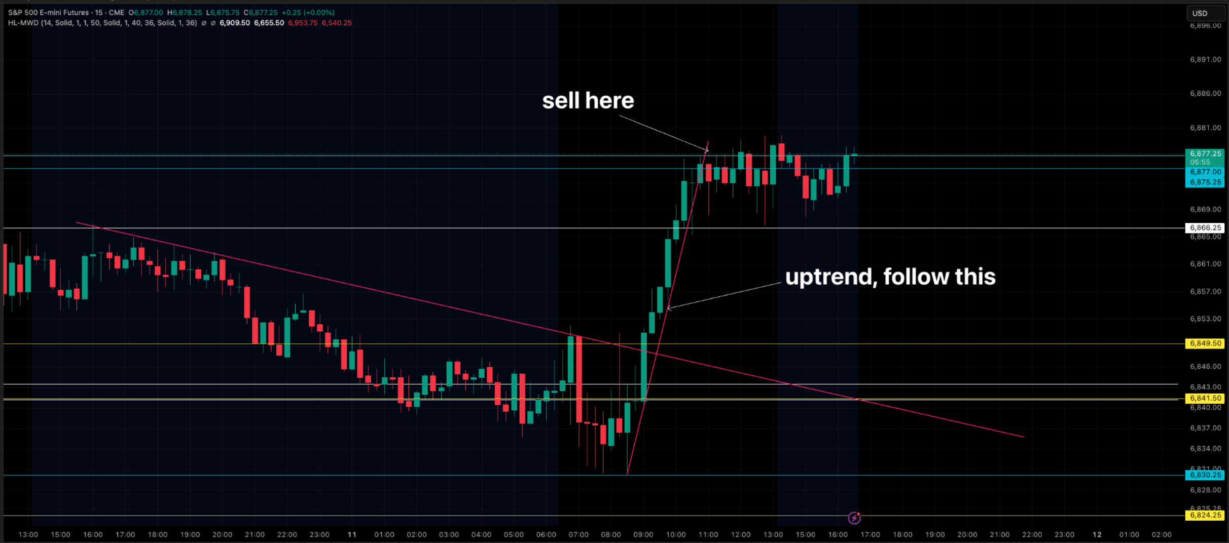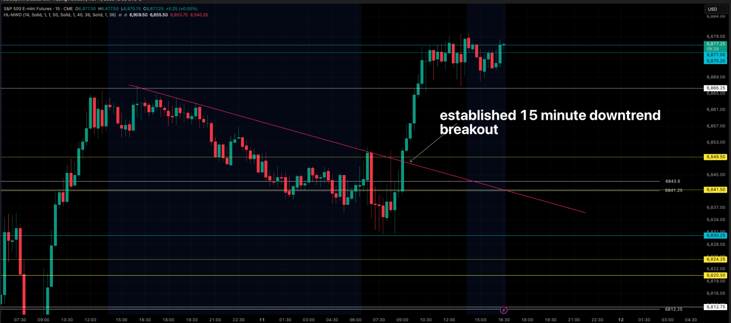 Morning opened with a downtrend fade and clean break on the 15 min as we’ve been demonstrating is their go-to move the past week or so of trading.
