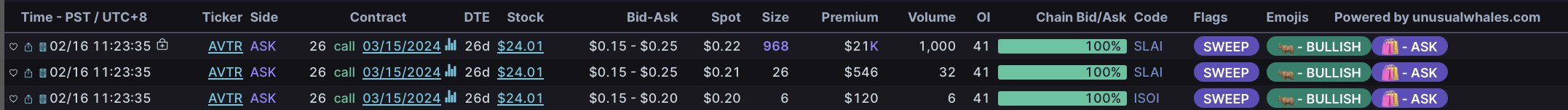3️⃣ AVTR 26c 3/15 (entry tomorrow if we can get a good fill)