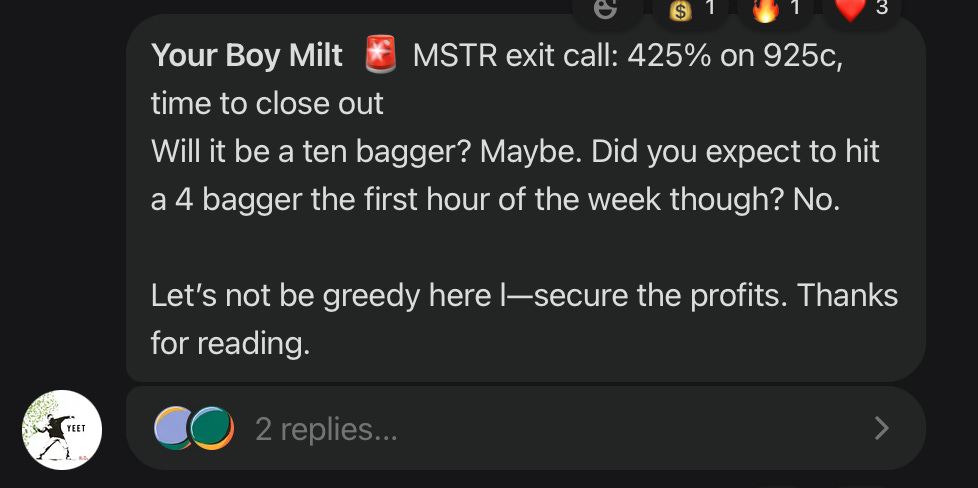 ✅420% in first hour of trading on MSTR today (this morning/last night pick):