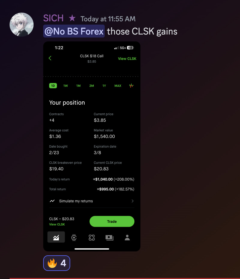 ✅200%: CLSK pick from Thursday goes on a ripper:
