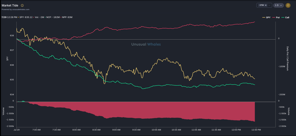 Put premium dominance surged all day (red line climbing), while call premium got smoked.