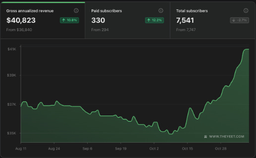 We’re now sitting at $40,823 Gross Annualized Revenue (+10.8%), with 330 paid subs (+12.2%) holding steady.