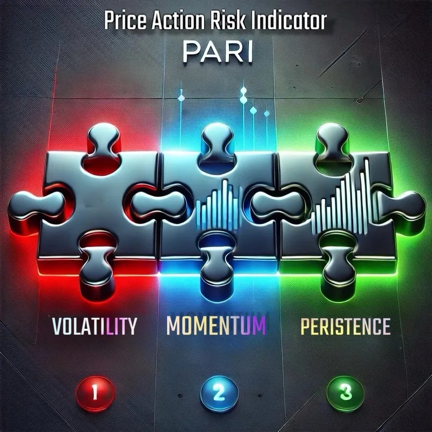 🧠PARI = Price Action Risk Indicator. It blends short-term momentum with realized volatility to score market posture on a 0–100 scale (red→green). Higher = momentum outpacing risk (risk-on); lower = volatility dominating momentum (risk-off).