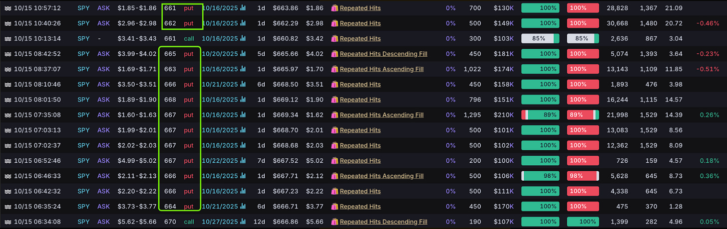 This morning we saw the SPY Magic Filter light up with puts showing significant laddering, so we took the downside play for 6 points in the garden.