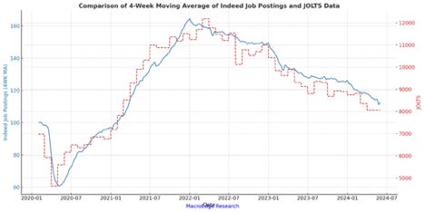 Job postings will be below the Feb 2020 level Q3 or Q4 at the current pace which means JOLTS will follow.