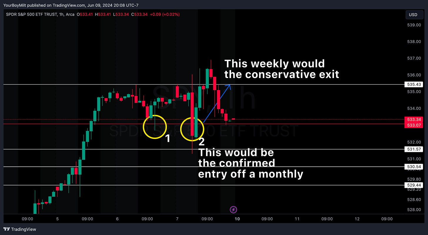 Entries: Instead of taking entries on weekly levels, or using recall*, we are going to focus on MONTHLY entry at CONFIRMED levels ONLY—it means fewer plays, but playing the game the right way. Monday and Tuesday may be as boring as…well…baseball itself.