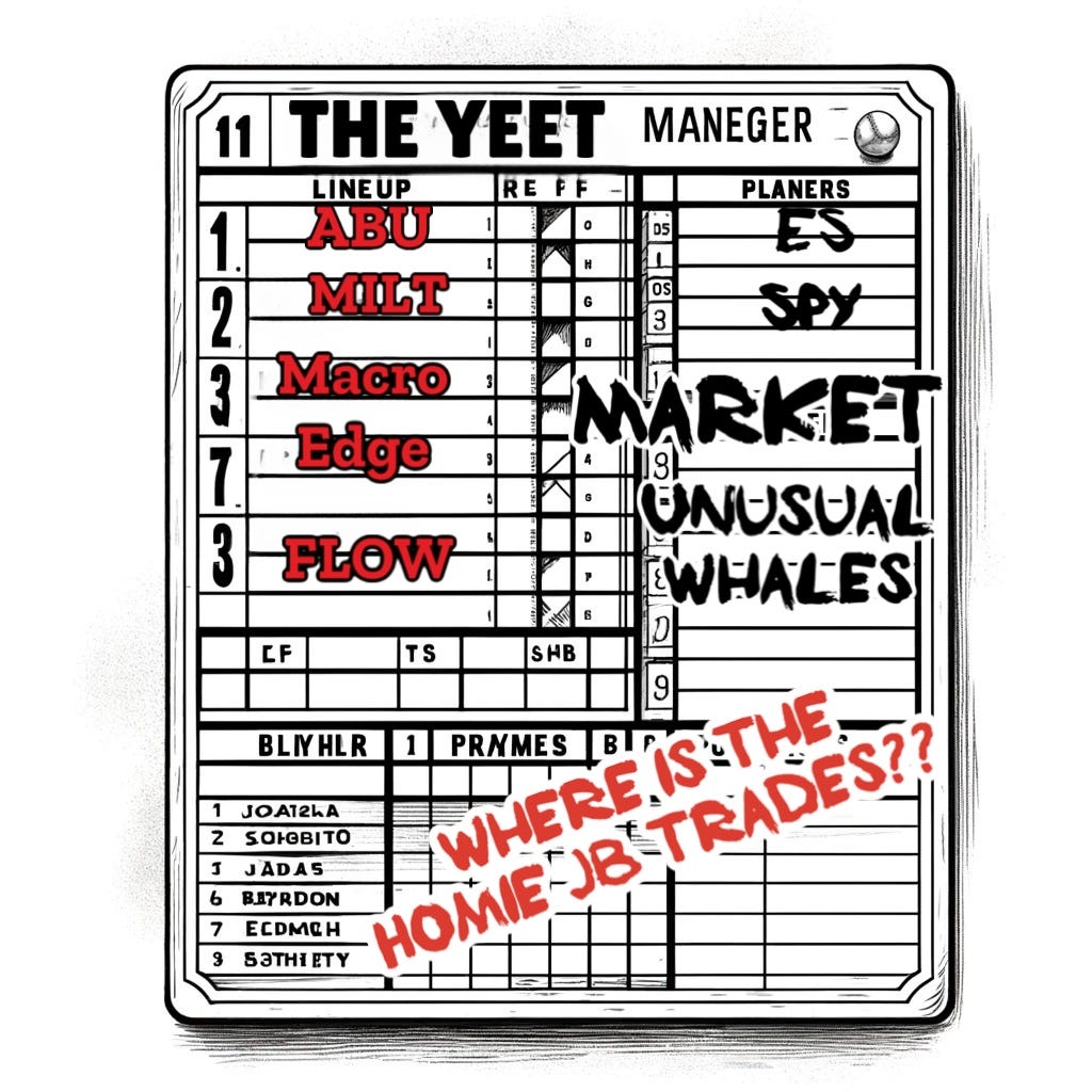 Focusing on quality and thesis this week—and the YOLOs will only be of the most tantalising variety. IT IS CPI/FOMC week—the first of its kind I think since I’ve been trading where it’s doubled up like that—and for the most part flow is just gambling unless you have a Price Action thesis that they match.