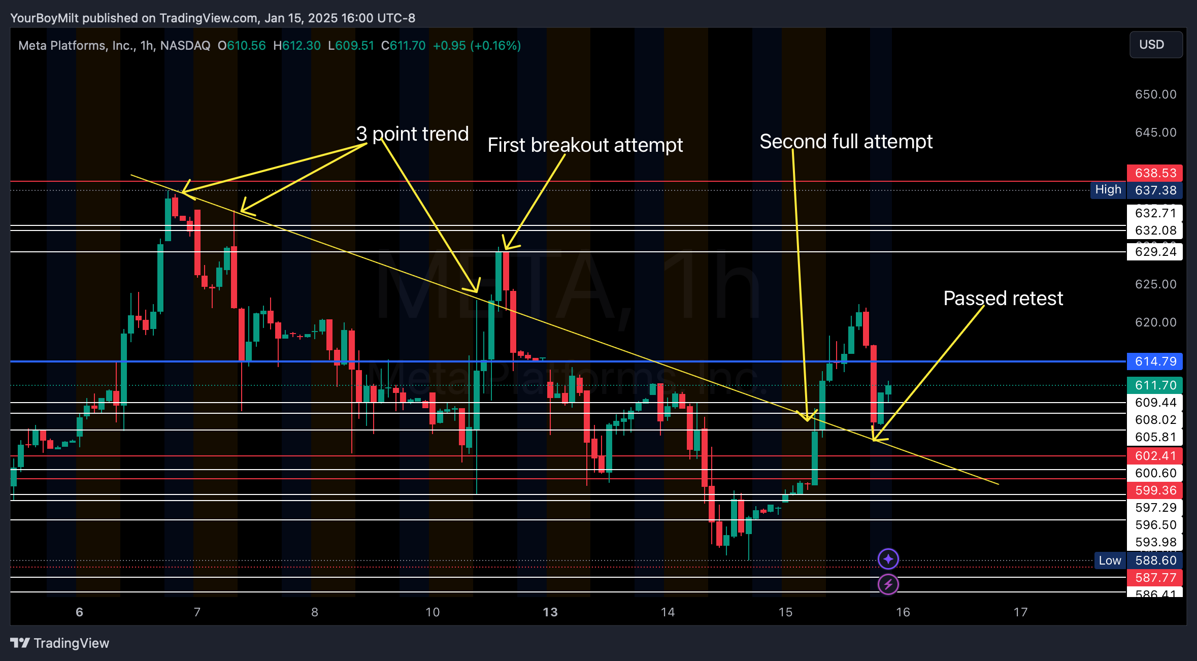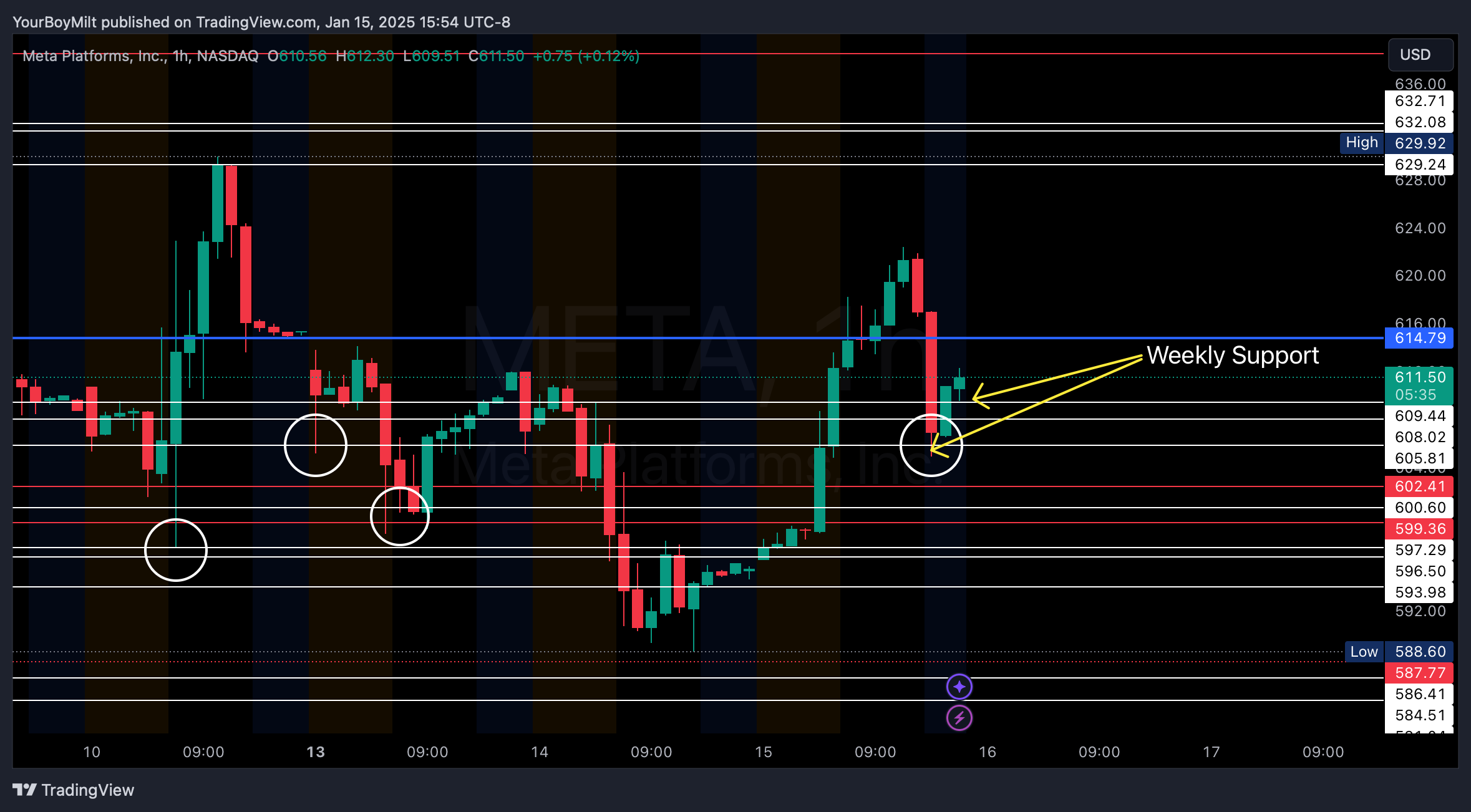 You can see currently that META is progressively holding weekly support and—