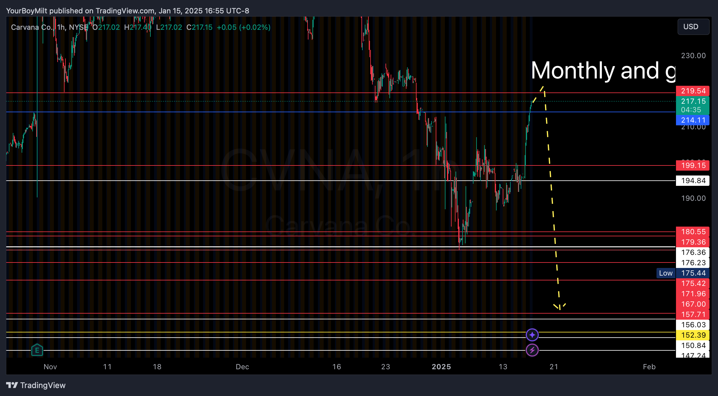 This would also almost directly coincide with CVNA approaching a a daily gap level, a monthly, and that monthly which also doubles as a closure of the daily gap level. In other words.