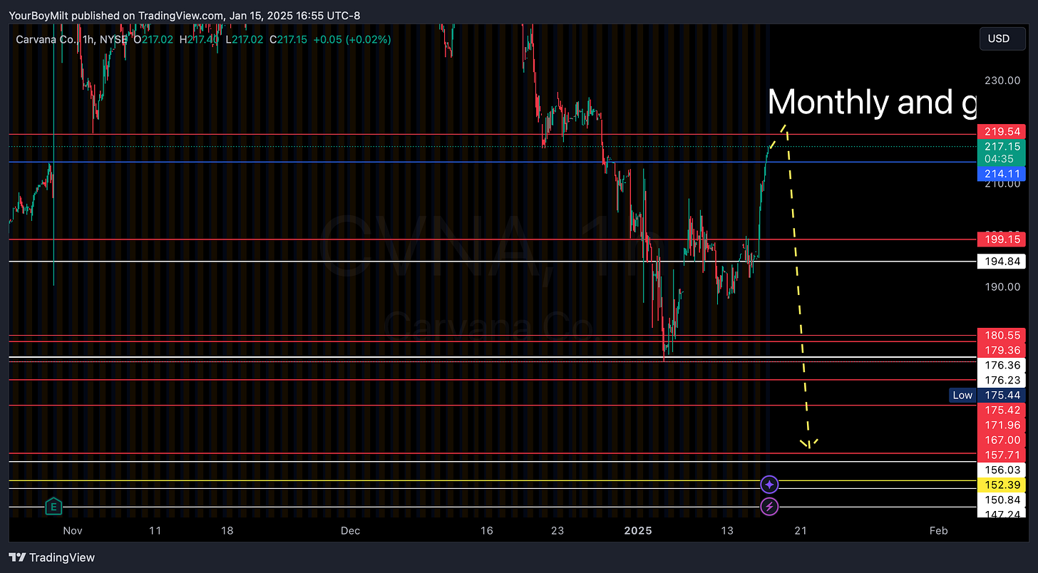 First you must understand that every Price Action board we use—from ES to CVNA—is an instrument designed to respond to the weekly and monthly levels of its own creation.