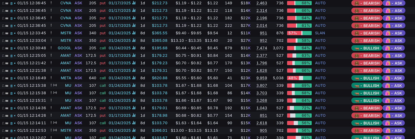 For example, here you can see on the Intraday Sniper Filter (all 6 YEET filters included with your YEET Plus Annual Subscription) that although end of day puts started rolling in, MU was getting hit with OTM flow expiring on weeklies