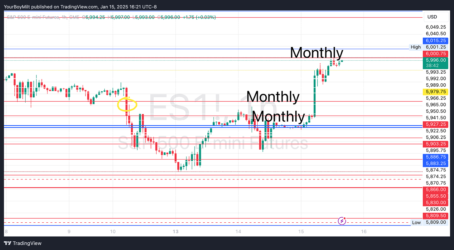 On normal trading days the weekly AND monthly levels are key. On volatility days like these (CPI FOMC NVDA)—markets only care about responding to monthly levels. It’s the reason why the swings are so wide those days.